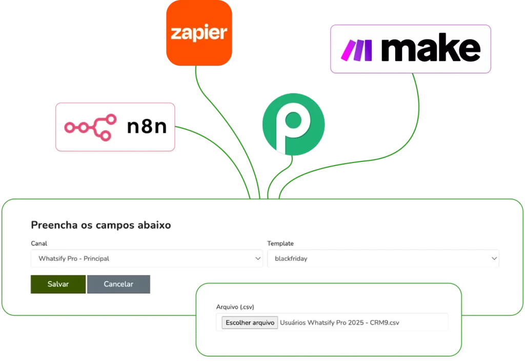 O Whatsify Pro se integra ao CRM, ERP ou qualquer sistema que sua empresa já utiliza, enviando e recebendo dados em tempo real por meio de Webhooks.